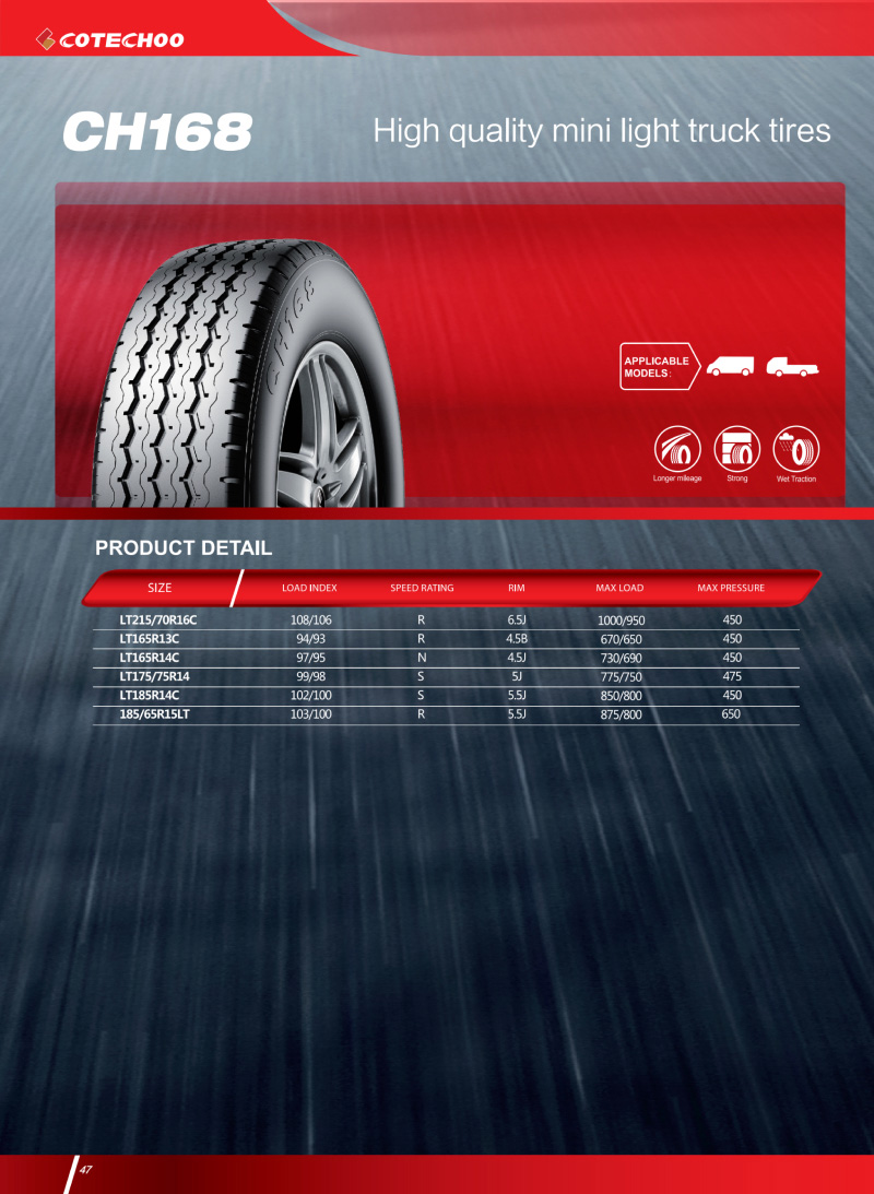 精品輕載花紋曲折的花紋溝槽加雙層胎體結(jié)構(gòu),更強(qiáng)的承載力,深花紋設(shè)計(jì)提供卓越的耐久性能。