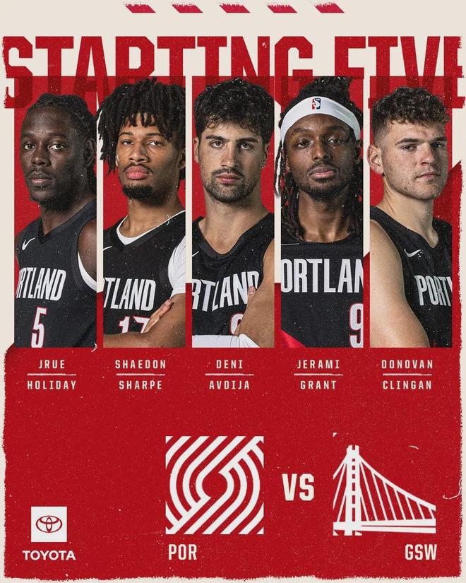 今天楊瀚森依然替補(bǔ)出戰(zhàn),格蘭特重回首發(fā)陣容:霍勒迪、阿夫迪亞、夏普、格蘭特、克林根。勇士這邊,巴特勒(腳踝輕微扭傷)和追夢(mèng)格林不打,56號(hào)秀威爾-理查德進(jìn)入首發(fā)陣容:庫(kù)里、波杰、理查德、庫(kù)明加、霍福德。