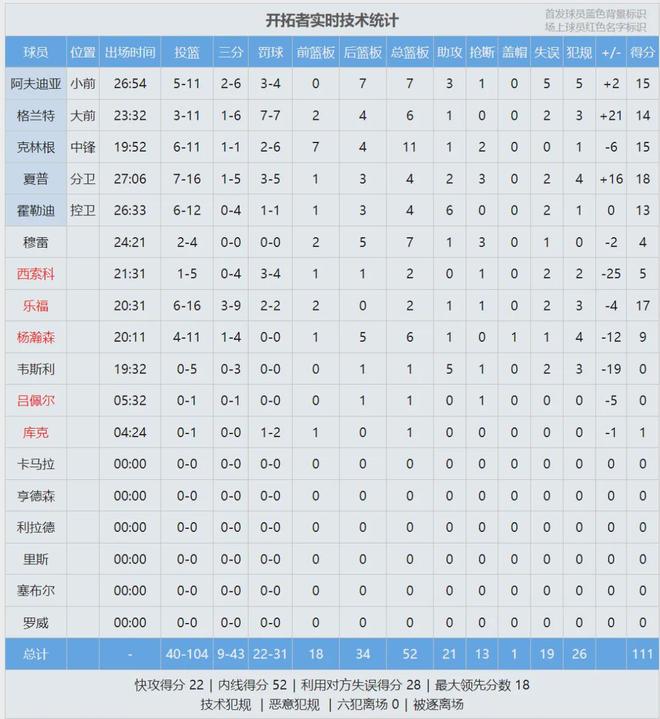 楊瀚森籃板球,創(chuàng)造季前賽生涯新高。本場(chǎng)籃板保護(hù)有進(jìn)步,但有時(shí)候過(guò)度協(xié)防,就會(huì)漏掉自己防守的球員。最后看看數(shù)據(jù),說(shuō)說(shuō)你的心情: