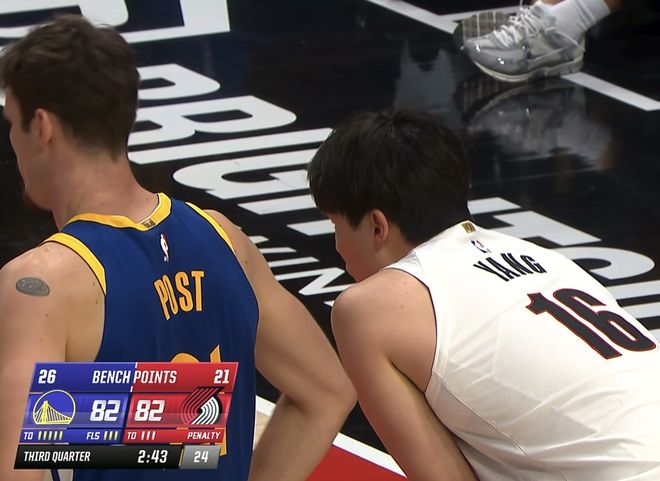 在兩隊的二番戰(zhàn)中,開拓者首節(jié)打得更好,以30-22領(lǐng)先。在本節(jié)比賽中,楊瀚森替補上場后連續(xù)為球隊保護籃板,為開拓者隊的進攻奠定基礎。第2節(jié)較量,雙方大打?qū)?zhàn),開拓者22歲的年輕后衛(wèi)夏普表現(xiàn)突出,既能沖進內(nèi)線得分,又可以在外線發(fā)炮,幫助開拓者繼續(xù)擴大分差。但隨著勇士打出一波進攻高潮,半場結(jié)束,開拓者61-56勇士。