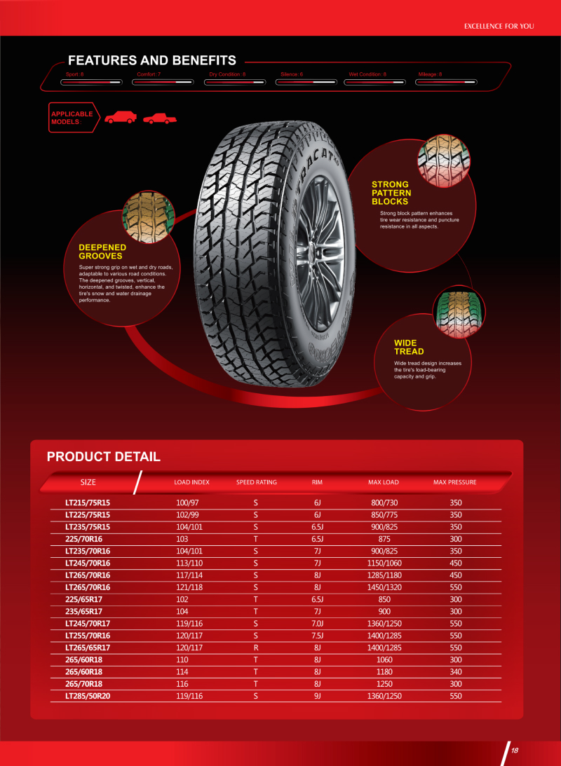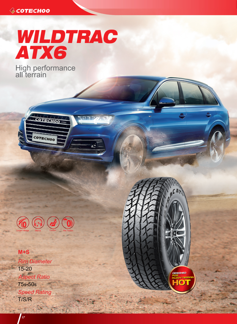 高性能越野輪胎,強(qiáng)壯花紋塊和胎體,能適應(yīng)各種惡劣路況。