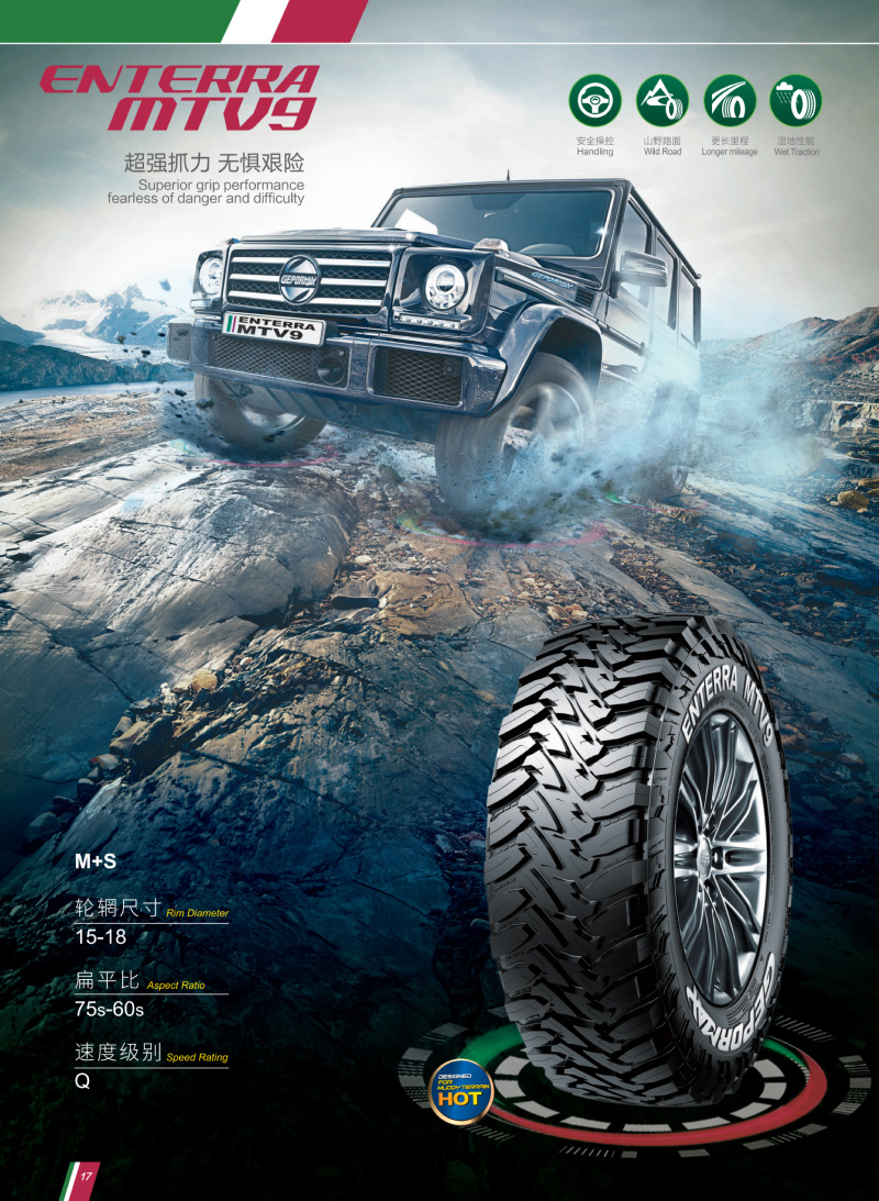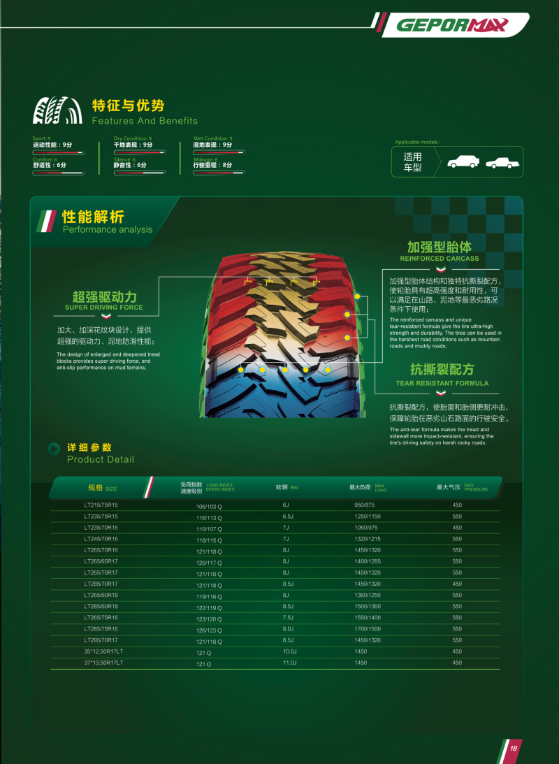 火焰型大塊花紋,是一款用于極限越野的輪胎,惡劣路況下提供超強(qiáng)的驅(qū)動力、泥地防滑性能。