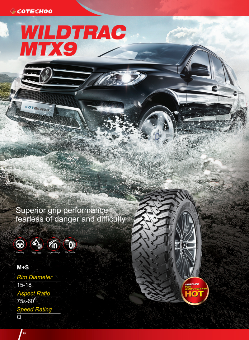 火焰型大塊花紋,是一款用于極限越野的輪胎,惡劣路況下提供超強的驅(qū)動力、泥地防滑性能。