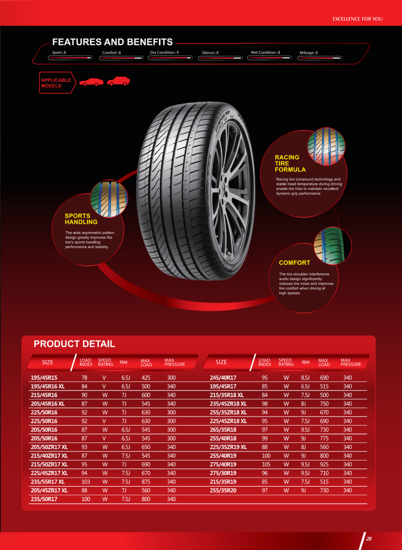 出眾的操控性能,運(yùn)動(dòng)型輪胎中不可多得的兼具舒適性,駕乘更流暢、更舒適。
