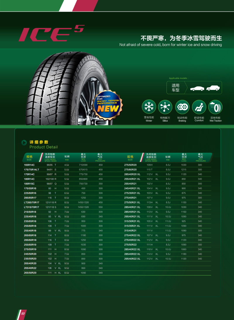 全新花紋和耐寒配方,為冬季冰雪駕駛而生,在冰雪路況下提供更有效的行駛和轉(zhuǎn)彎穩(wěn)定性,并可適用于新能源汽車。