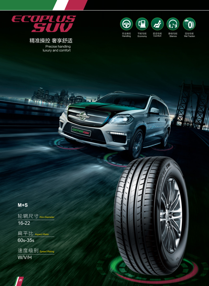 SUV專用輪胎,靜音胎面,超強抓地設(shè)計,精準(zhǔn)操控。
